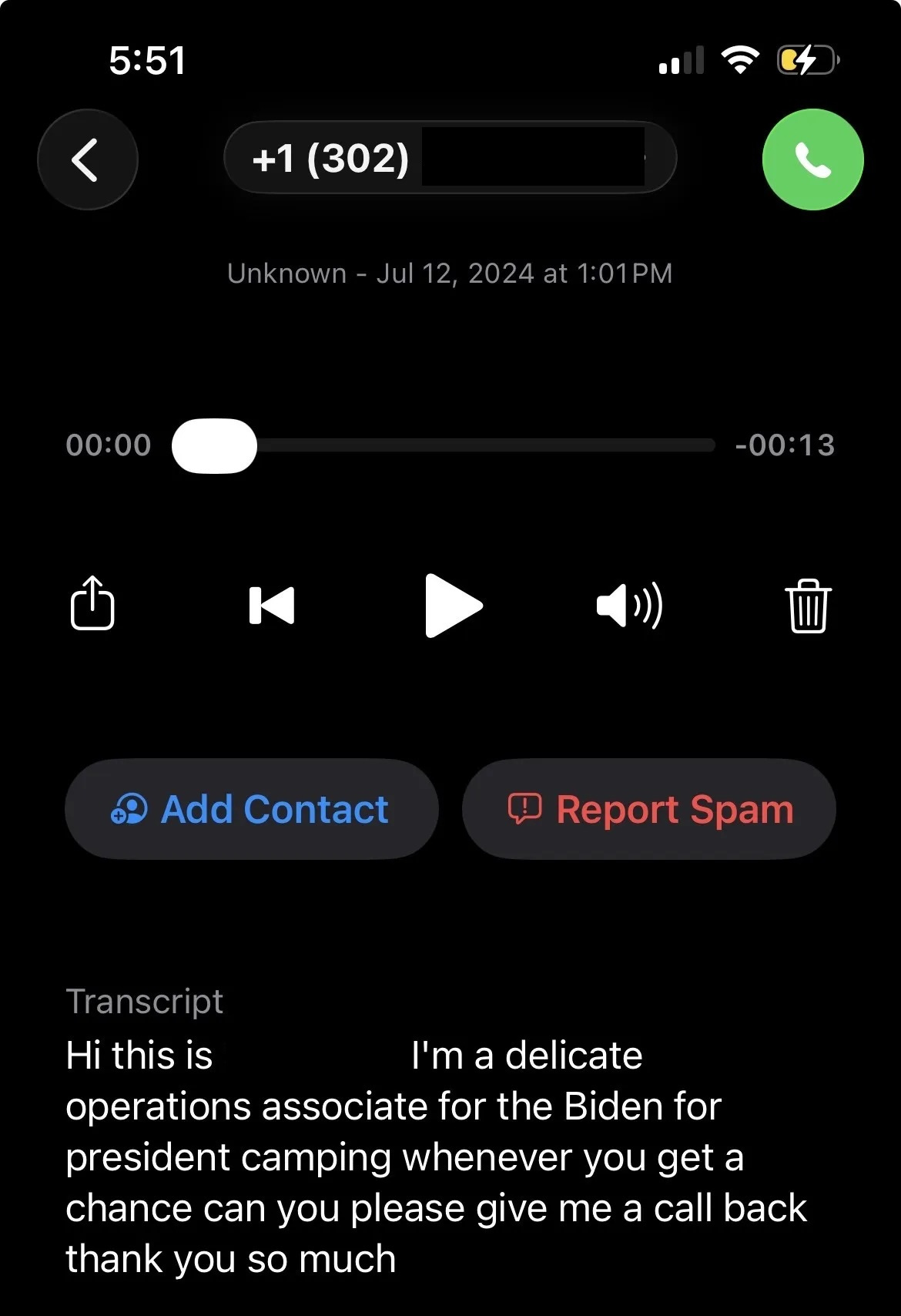 After the debate, Biden HQ started calling all the delegates from different Delaware based phone numbers, trying to lock down our support for Biden as the presidential nominee. I picked up the first call, and when I realized why they were calling, I told them I had [solidcore], and hung up. After that, I ignored their (many) calls and deleted their voicemails, but I did screenshot a few things for posterity.
