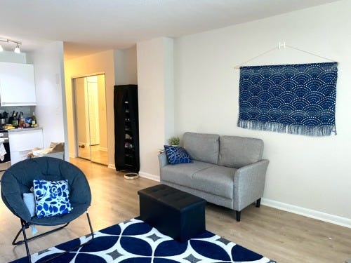 I’m really leaning into the Virginia Woolf vibe a la “A Room of One’s Own” like look at my #adorable living room! My apartment is just 505 square feet but it’s all my own, and I’m accountable to nobody except myself. I cook and clean and fold my laundry, I Peloton and work on my couch and clean my hair off the bathroom floor because I shed like Jude (the Golden Retriever), and it’s mundane but it’s also my own mundane, and I cherish it.