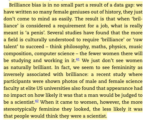 Moreover, I’m perfectly aware that the truth of the matter is that the way I am would be much more acceptable if I didn’t look how I look. The following passage is from Invisible Women: Data Bias in a World Designed for Men by Caroline Craido Perez (which I gave to my roommate for her birthday this year), and it gets at my point: