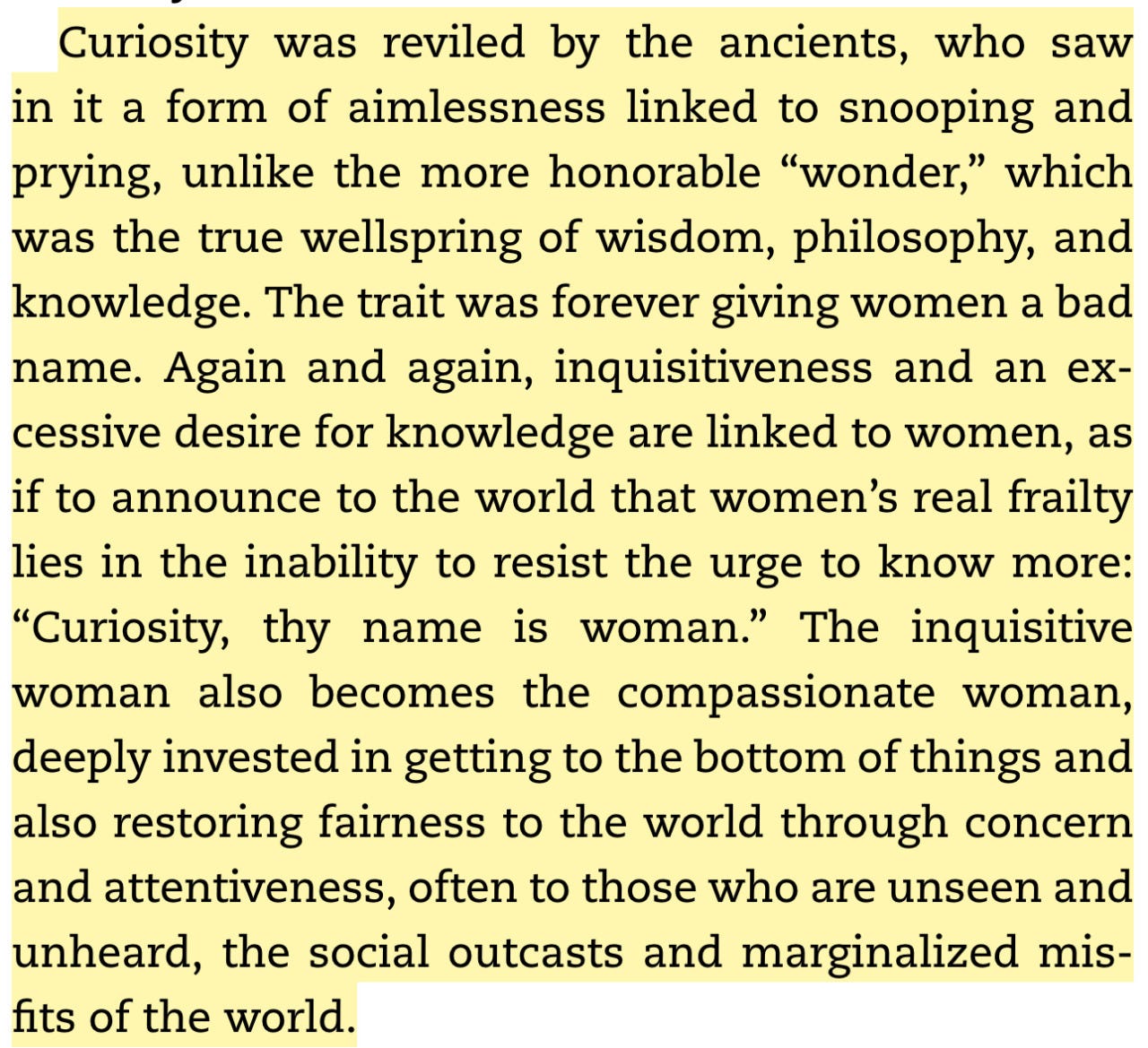 The Heroine with 1001 Faces by Maria Tatar: I think that there’s a real disdain for women seeking out information that is being hidden from them, so I naturally loved this part. My brand of rational skepticism is apparently male-coded, who’d have ever thought?