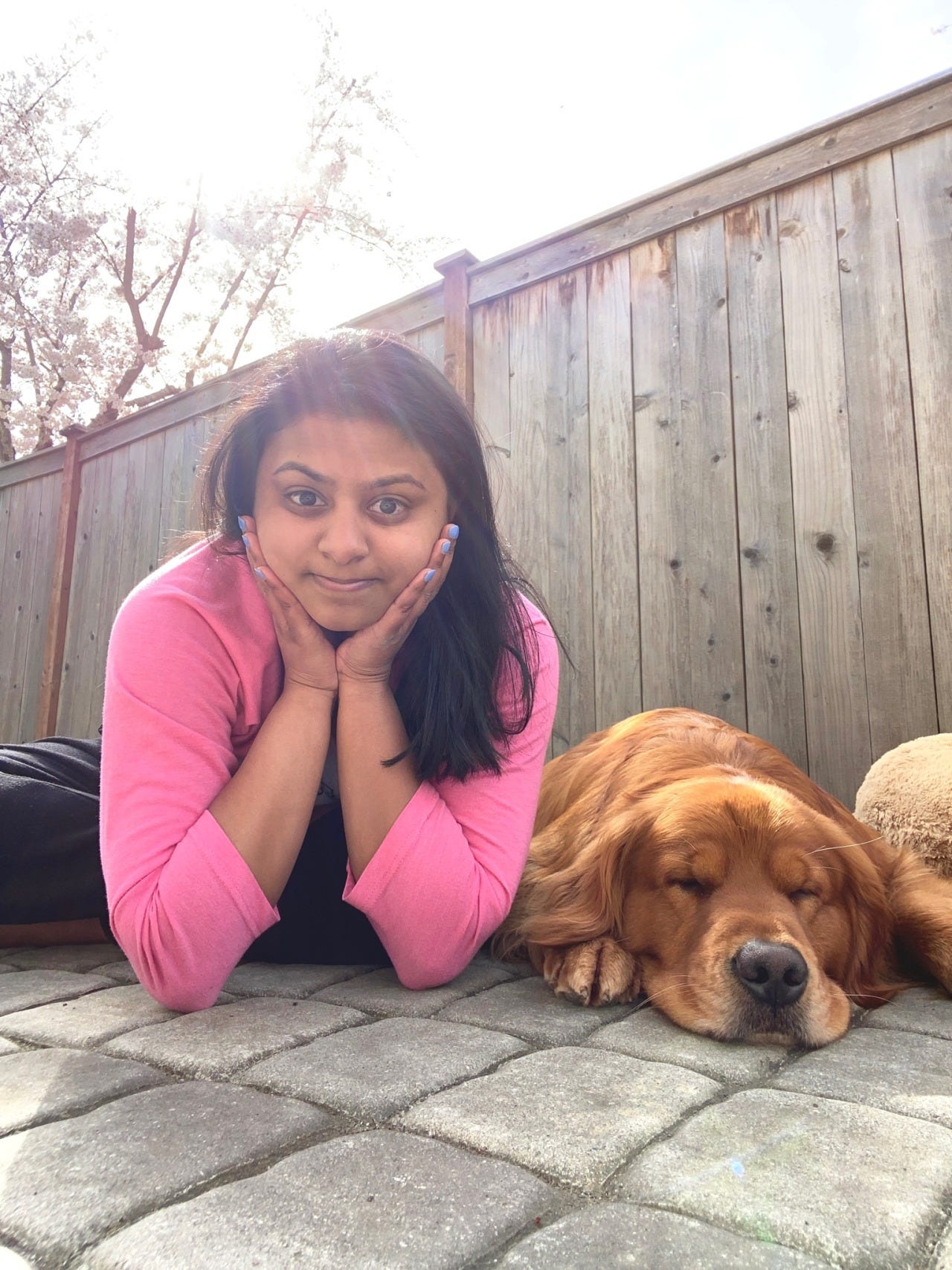 Lastly, here’s a picture of Jude and Dhaaruni the day I found out my Final 4 March Madness bracket was perfect!!! And of course, Jude did not care.