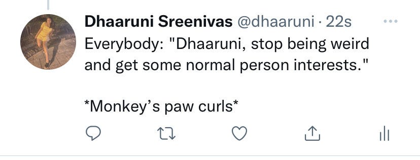 My alternating between “Samson” by Regina Spektor and the Celtic Woman version of “Danny Boy” is extremely based, and quite telling about where my mind is at right now. The thing about “Samson” is that first of all, I AM a young millennial of the suitable age for that song to make me go extremely feral, and perhaps more significantly, that song will always remind me of my first love™ who I originally fell for when his hair was long and my hair was (dip-dyed) red and I cut his hair in the yellow light (or whatever).